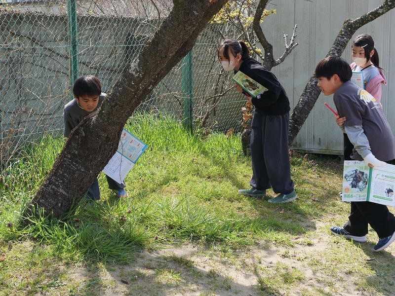 4年生の理科、「フィールドビンゴ」をしながら校庭の春を見付けました。一番難しかったのは実はつくし。プール前に一本生えていました。いつも見慣れている校庭も、「春をみつけよう」と意識することで見え方が変わってきます。理科の学習を通して、いつもの風景がまた違った視点で見えることができるように、楽しんで学習を行ってほしいと願っています。
