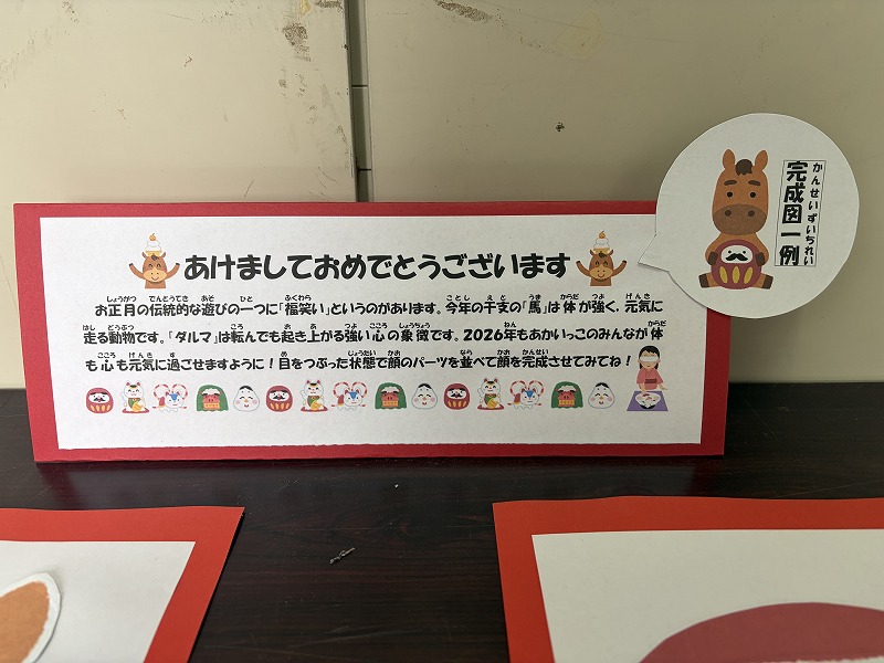 2026年1月8日 / 最終更新日時 : 2026年1月8日 mw2p8fe4j0 あかいっ子の様子 お正月といえば、福笑い。 保健室前に、福笑いセットが置かれています。さっそく目をつむりながら楽しむ子供たちの姿が見られました。 Post Views: 42