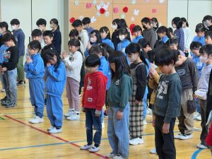 毎回、1年生から6年生の子供たちが学年関係なく楽しく遊んできた「放課後遊Viva」です。東日本大震災発生の14時46分を告げるサイレンで、黙祷を捧げてからスタートしました。今日はドッジボールとサッカーを場所を分けて行っていました。今回は学年ごとにチームを分けてゲームを行い、投げる、逃げる、蹴るなど様々な動きを楽しんでしました。