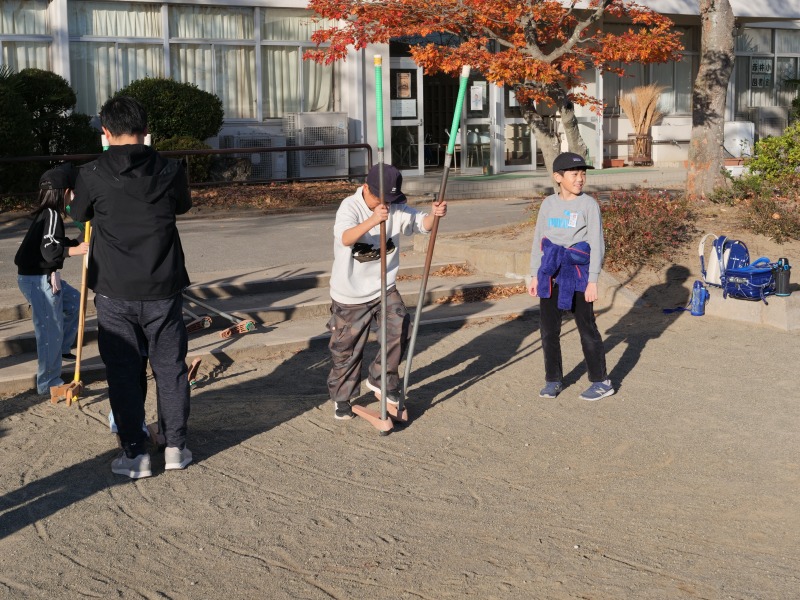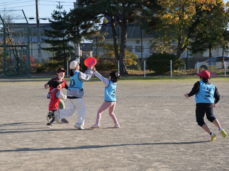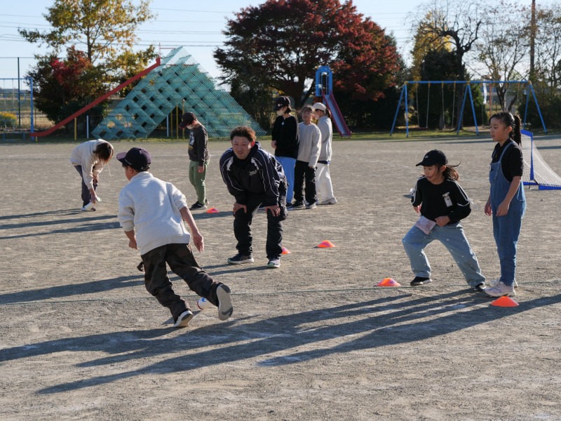 太陽が暖かく降り注ぎ、ほとんど風もない絶好の天気の下、3回目の「放課後遊VIVA」が行われました。今回は「地面に置いたものを倒したら逃げる鬼を、捕まえる」遊びや「竹馬」「フリスビーを使用したアルティメットのようなゲーム」に取り組みました。1年生と3年生は学級閉鎖により参加できませんでしたが、学年関係なく楽しく遊ぶことができました。特に竹馬には初めて挑戦する子も多く、悪戦苦闘しながらもコツをつかむことができていました。翌日、休み時間に竹馬に挑戦する児童の姿がありました。今回も楽しい遊び場を提供して下さった東松島市体育指導員の皆様、ありがとうございました。