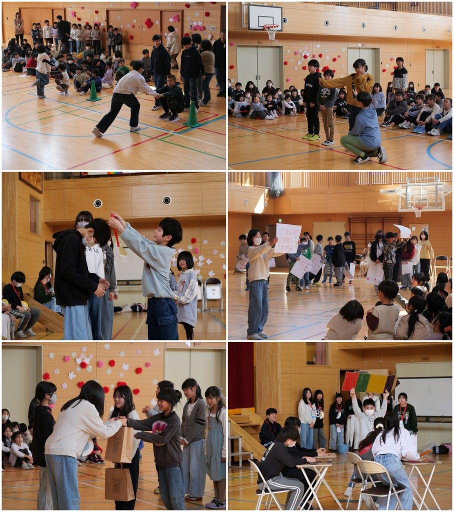 5校時に「6年生を送る会」が行われました。各学年、6年生への思いを込めて、一緒に対決したり、出し物をしたり、プレゼントを渡したりと、楽しい時間を過ごしました。6年生は「学校でよくあること」をテーマとした寸劇を披露しました。「演じるということは、こういうこと」というメッセージが、1年生から5年生の子供たちに伝わったのではないでしょうか。6年生との残り少ない日々を、大切にしてほしいです。