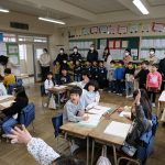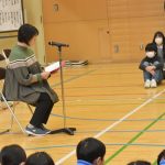 本校1年生と、次年度入学予定の保育所・幼稚園年長さんによる交流会が行われました。まずは教室で授業見学。1年生は算数の学び合いによる問題作りを行いました。多様な問題を作り、友達と考えを交流した後はタブレットを活用しての習熟です。次々と問題を解いていく1年生を見て、年長さんたちは「すごい」「やってみたい」と話していました。講堂に移動し、交流会がスタートです。1年生児童の進行で進み、校歌、行事紹介、じゃんけん列車、きらきら星(英語での合唱や鍵盤での合奏)、 1年生が年長さんに背負わせてあげるランドセル体験、そして和太鼓の発表を行いました。1年前は自分たちが見学に来る立場であった1年生が、年長さんたちのお兄さん・お姉さんになり、たくさんの学習の成果を見せました。「学校が楽しみ」「太鼓を叩いてみたい」「早く1年生と遊びたい」口々に話す年長さんの言葉に、優しく「待っているよ」「また遊ぼうね」と話す1年生の子供たちからは、進級を前にした自信と確かな力の高まりが感じられました。